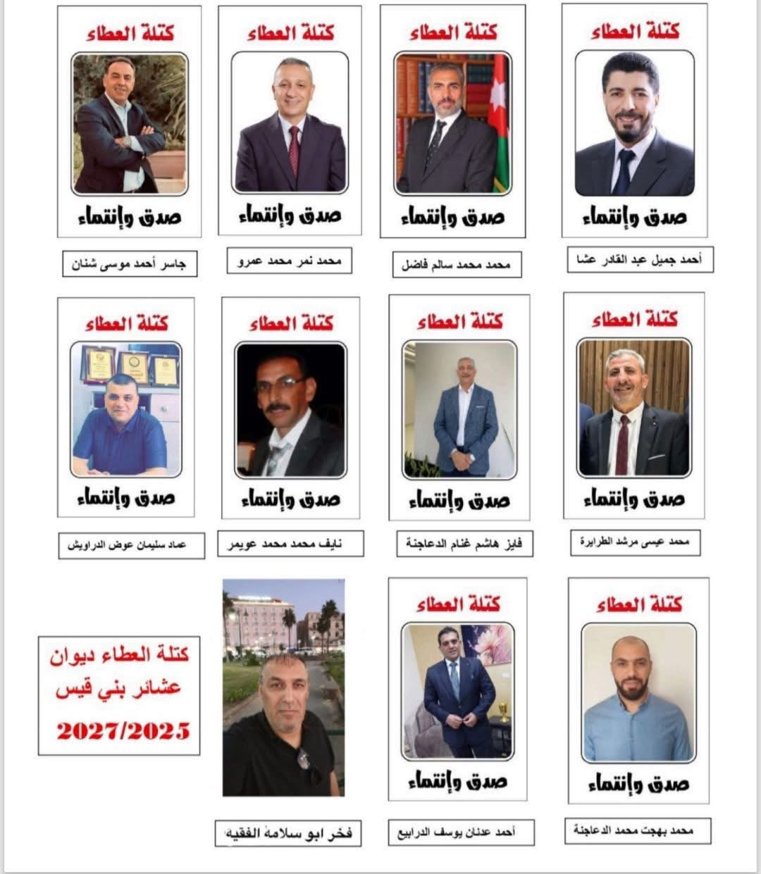 النائب أحمد عشا رئيسًا والعمرو نائبًا… وكتلة العطاء تحصد الهيئة الإدارية لديوان عشائر بني قيس