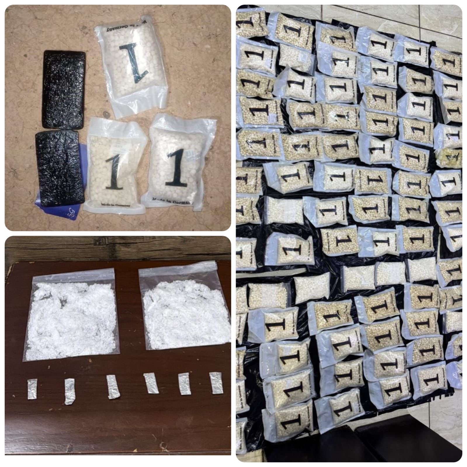 وفي جنوب العاصمة تم التعامل مع 5 قضايا ضمن مناطق جنوب عمّان؛ أُلقي القبض في القضية الأولى على تاجر للمخدرات وضُبط بحوزته 8000 آلاف حبّة مخدرة، وضُبط في القضية الثانية مروج للمخدرات وبحوزته نصف كيلو غرام من مادة الكريستال وكمّية من الحبوب المخدرة، أما في القضية الثالثة ضُبط 2 كيلو غرام من مادة الماريجوانا المخدرة .