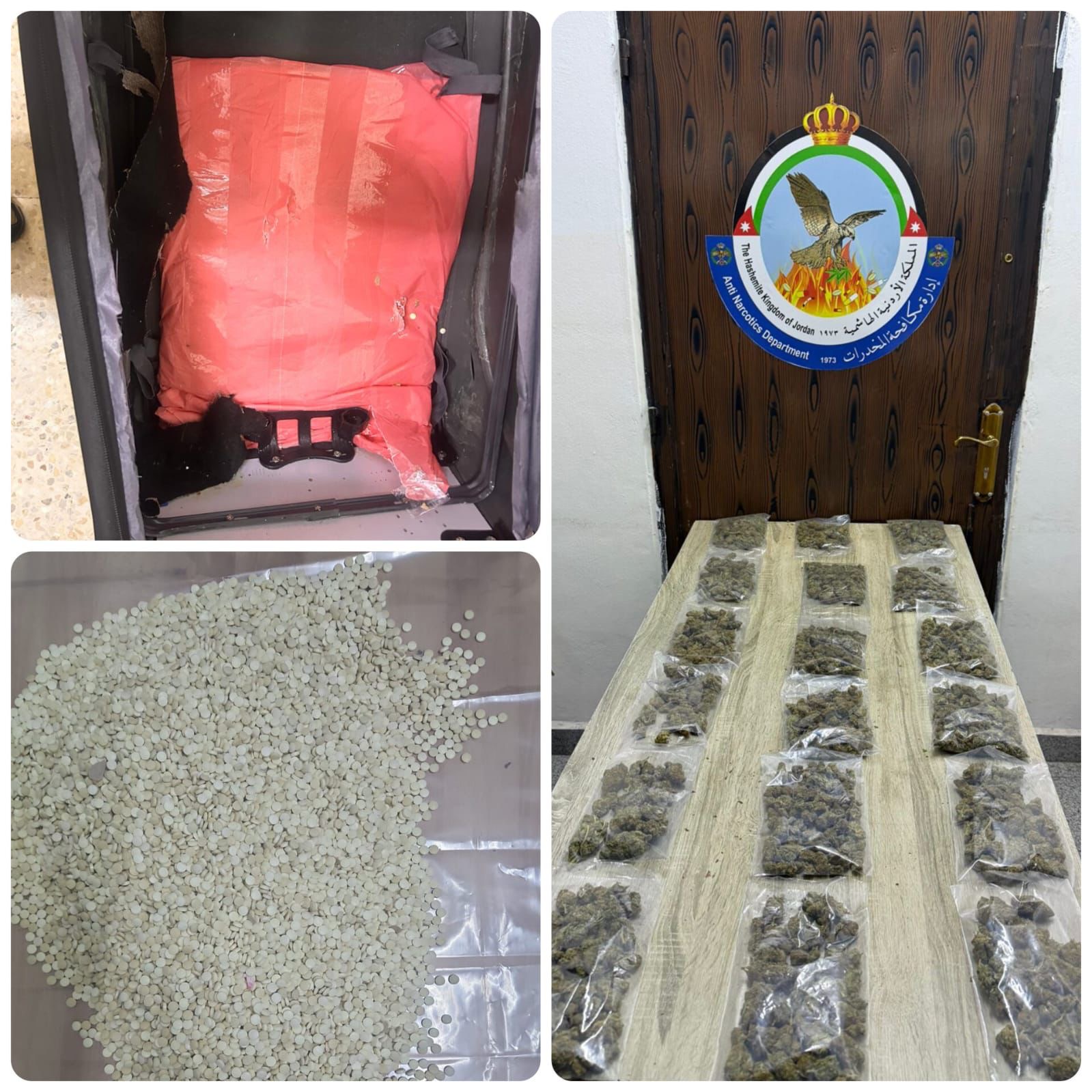 وفي مركز حدود العمري أحبطت كوادر مكافحة المخدرات وبالتنسيق والتعاون مع الأجهزة الأمنيّة والجمارك الأردنية محاولة شخصين تهريب 20 ألف حبّة مخدرة أخفياها داخل إحدى حقائب السفر.