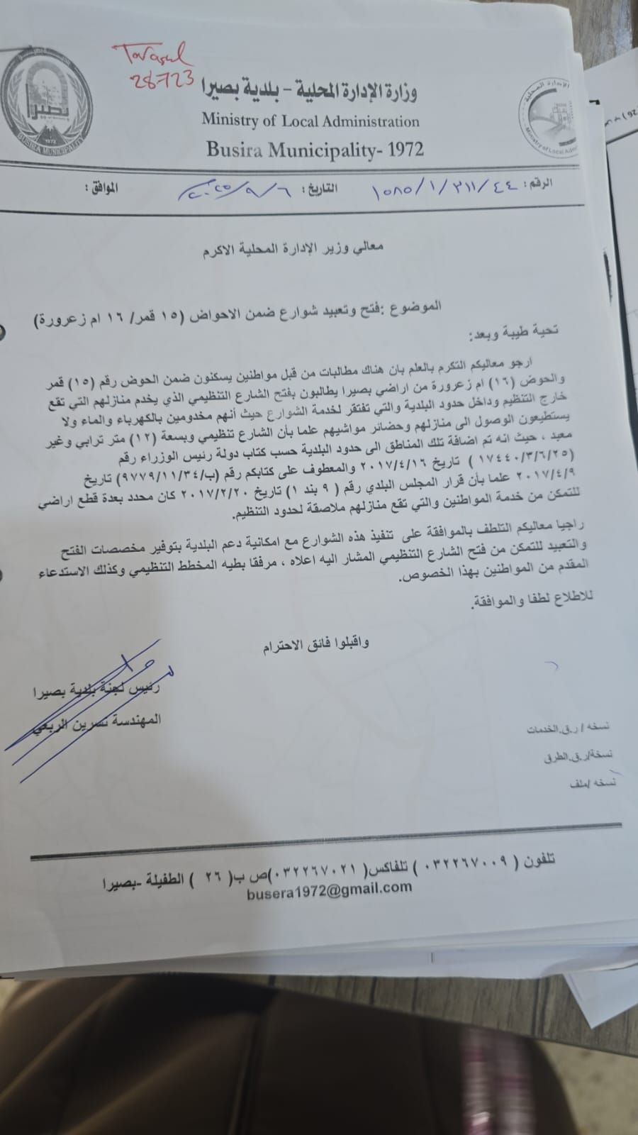 وقد رفعت بلدية بصيرا كتاباً رسمياً إلى وزارة الإدارة المحلية بتاريخ 6/6/2025، أوضحت فيه أهمية فتح وتعبيد الشارع استناداً إلى المخطط التنظيمي المعتمد، باعتباره يخدم عدداً كبيراً من العائلات ويُسهم في تحسين مستوى الخدمات بالمنطقة.