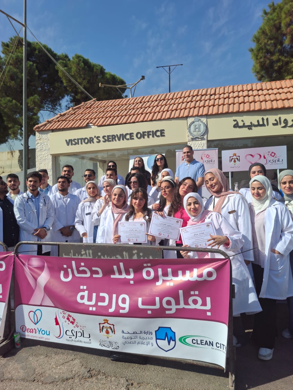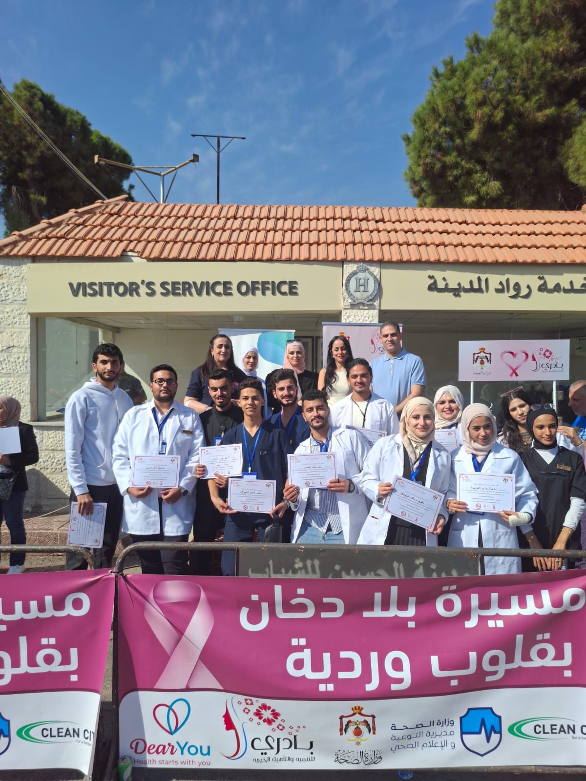 نظّمت جمعية بادري للتنمية والتأهيل، بالشراكة مع منظمة Dear Foundation Switzerland، وبالتعاون مع وزارة الصحة والإعلام المجتمعي، صباح السبت مسيرة توعوية بعنوان "بلا دخان” في مدينة الحسين للشباب، بهدف تعزيز الوعي بأضرار التدخين وتشجيع المجتمع على الإقلاع عنه.