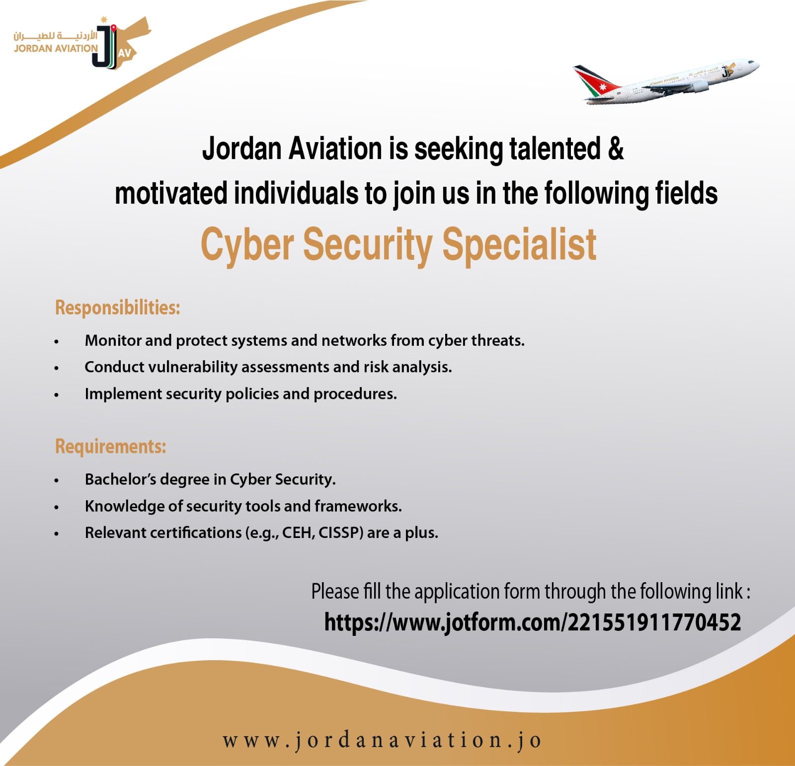 تعلن شركة Jordan Aviation Airline عن رغبتها في استقطاب كفاءات موهوبة ومتحفزة للانضمام إلى فريقها في المجالات التالية: