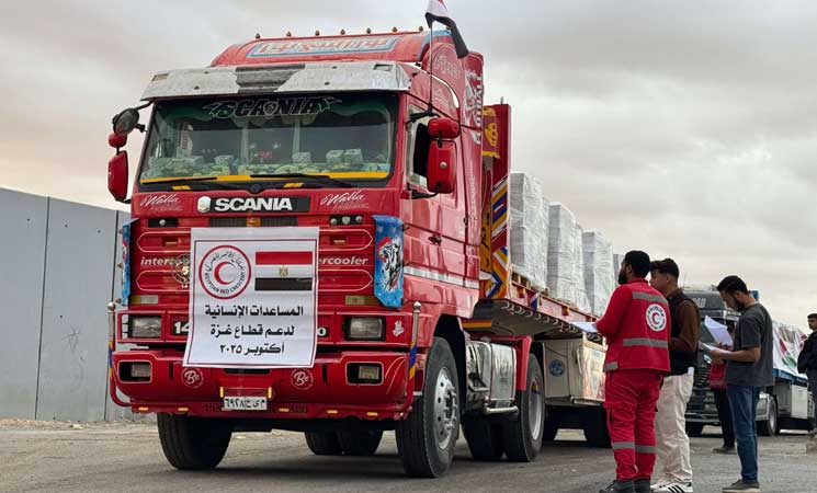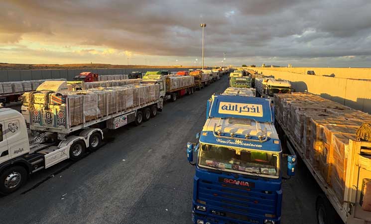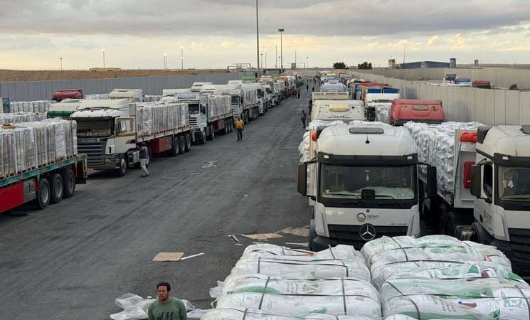 بدء دخول عدد من شاحنات المساعدات إلى قطاع غزة- (صور)